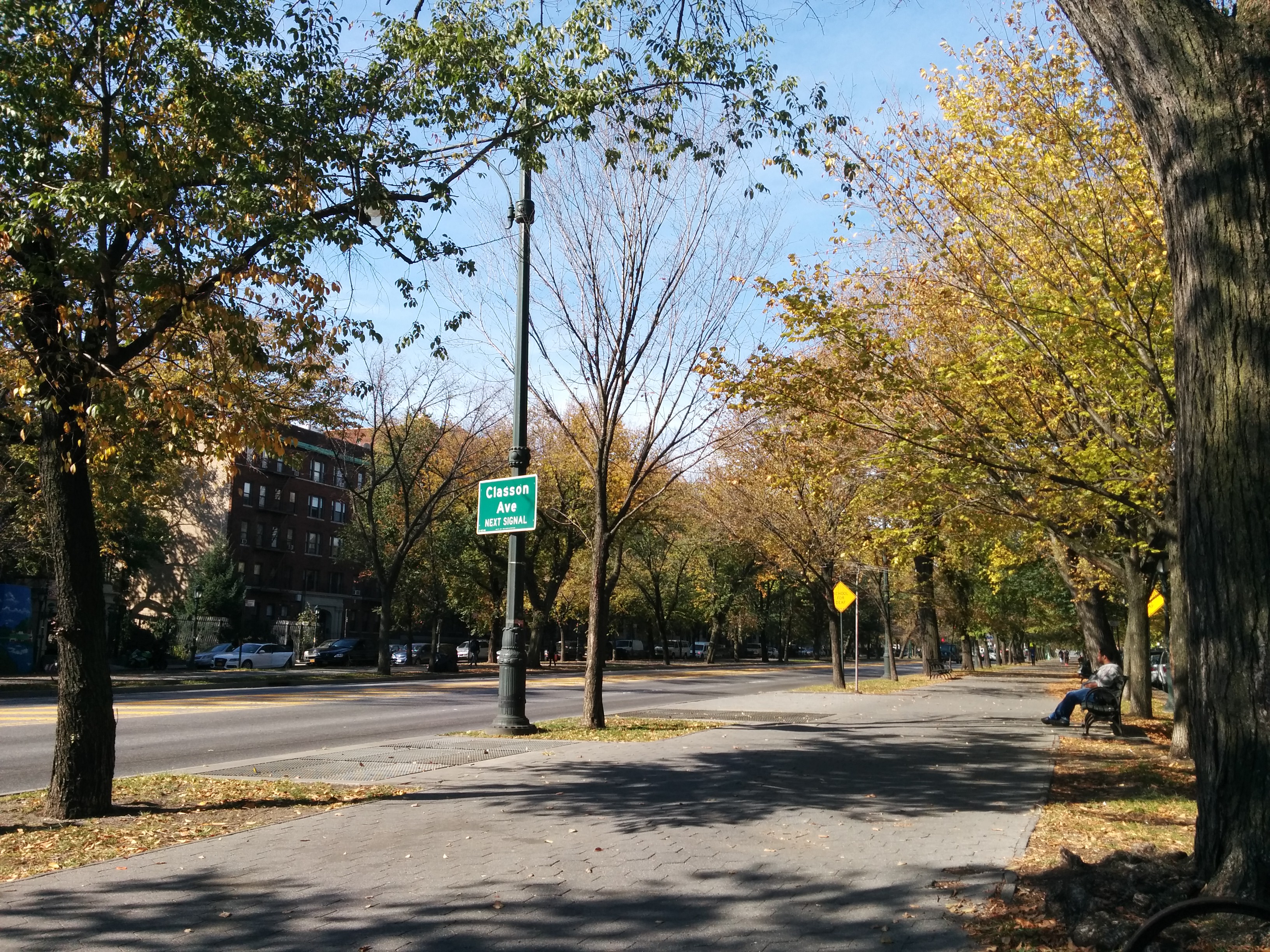 Before I take the last bite of delicious, melty cheese, salty roll and non-free-range-non-organic-cruelly raised egg and head down into the ground, I look up and down the street at the trees. The sunlight is catching the last of the leaves and I realise I am surprised that there are still any leaves at all. Surprised at the difference between different trees in different places within the city. Central Park still has many fall-coloured leaves, Eastern Parkway has almost none. And yet with the sunlight and clear blue skies, it could be summer.