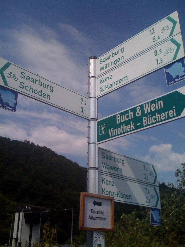 The extra space has proved handy the last few days when I have been carrying all this extra stuff! The boxes are a result of visiting the Villeroy & Boch HQ in Mettlach, and the wine is from the oldest Luxembourg vineyards on the Mosel. We’ll be drinking the wine back at Karlsruhe in a few days, but the boxes are coming home with us – I think getting them on the plane will be trickier than in the panniers!